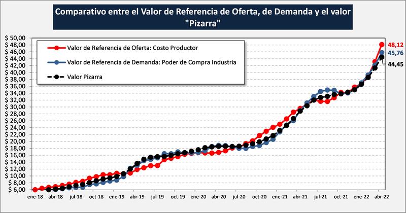 Valor Pizarra: precio publicado por la DNL-MAGyP en base a la muestra de 18 empresas.