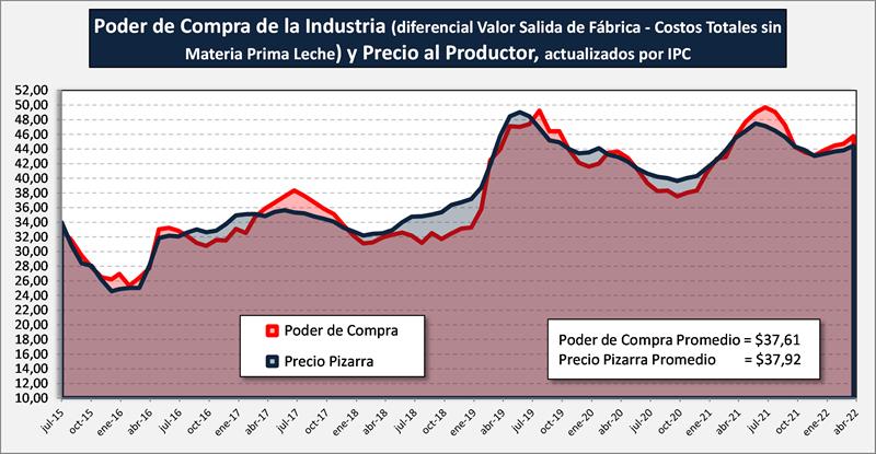 El poder de compra que se determina es el resultante de deducir del valor de salida de fábrica el total de costos sin considerar la materia prima leche y sin ningún nivel de resultado empresarial por encima de un costo de oportunidad que se calcula de igual manera para la industria como para el sector primario. Por lo tanto, el Valor de Referencia o Poder de Compra no significa Precio al Productor, en algunos momentos el Precio al Productor supera el Poder de Compra por circunstancias del mercado y en otras ocurre a la inversa, obviamente produciéndose resultados negativos o positivos, respectivamente para la industria.