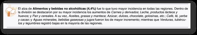 Los alimentos y bebidas no alcohólicas en general, crecieron un 4,4% en mayo de 2022, 33,7% en el período enero-mayo 2022 y un 64,2% en el interanual.
