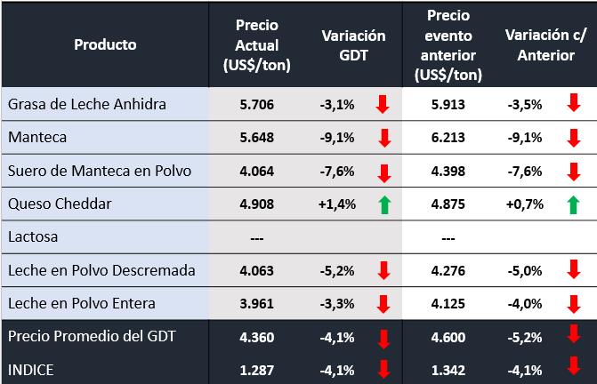 Evento N° 311 del Global Dairy Trade 5/7/2022