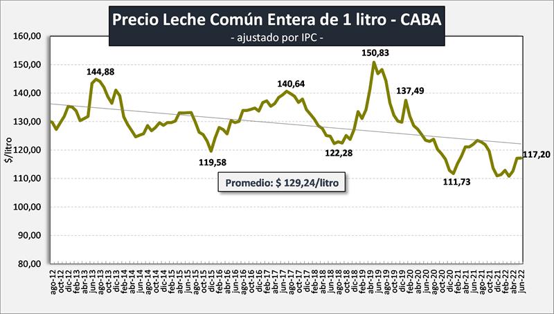 Según datos publicados por la Dirección General de Estadísticas y Censos - Ministerio de Hacienda del Gobierno de la Ciudad de Buenos Aires, los precios de los productos lácteos de esta canasta, tuvieron un crecimiento mensual promedio ponderado del 5,5%, en el primer semestre del año del 39,4%, e interanual del 64,1%. El ponderado es elaborado por OCLA sobre el mismo criterio mencionado para la canasta GBA de INDEC.