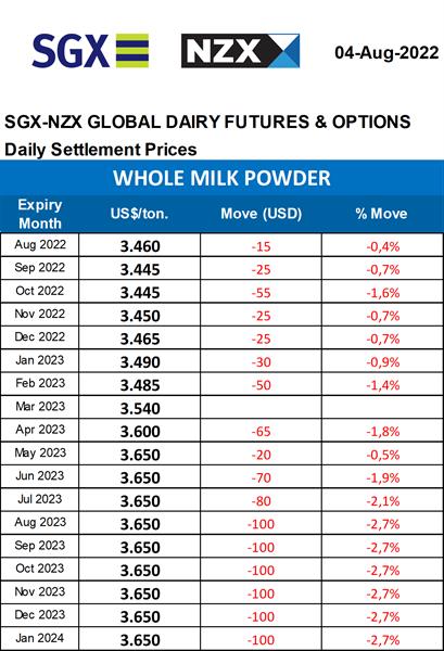 Mercado de Futuros NZX – Leche en Polvo Entera 5/8/2022