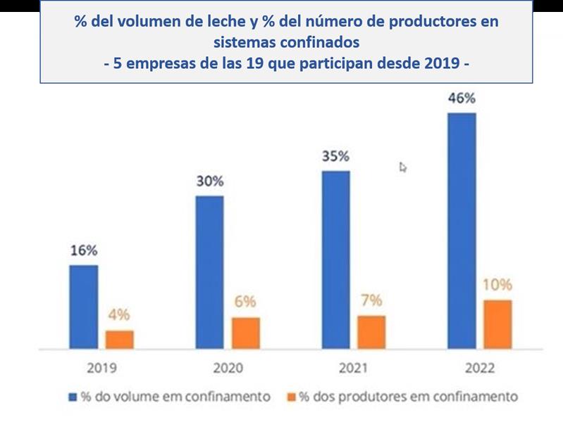 Otro dato interesante es que existe una tendencia a reducir la producción media diaria en aquellos que no adoptan el confinamiento. En 2019, el promedio diario fue de 539 litros/día; en 2020, 459 litros/día; en 2021, un ligero aumento a 481 litros/día y, en la encuesta actual, 420 litros/día.