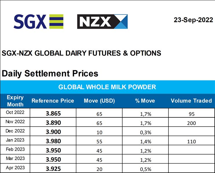 Mercado de Futuros NZX – Leche en Polvo Entera 26/9/2022