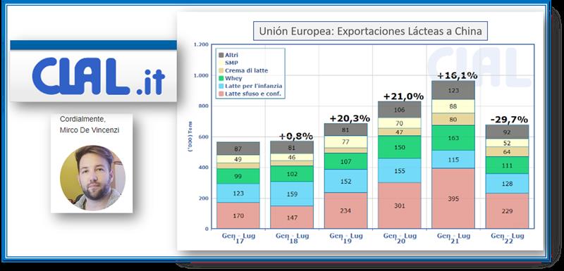 La exportación mundial de productos lácteos está mostrando signos de desaceleración debido al fuerte crecimiento de la inflación que está debilitando las economías del mundo. La economía china también está sufriendo, con efectos significativos en la demanda de productos lácteos.