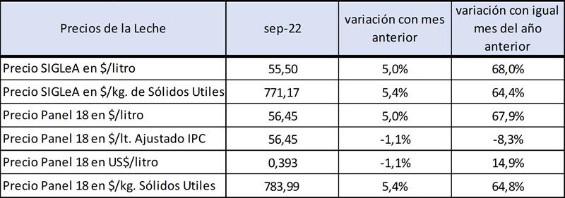 Precios de la leche al productor – septiembre de 2022 20/10/2022