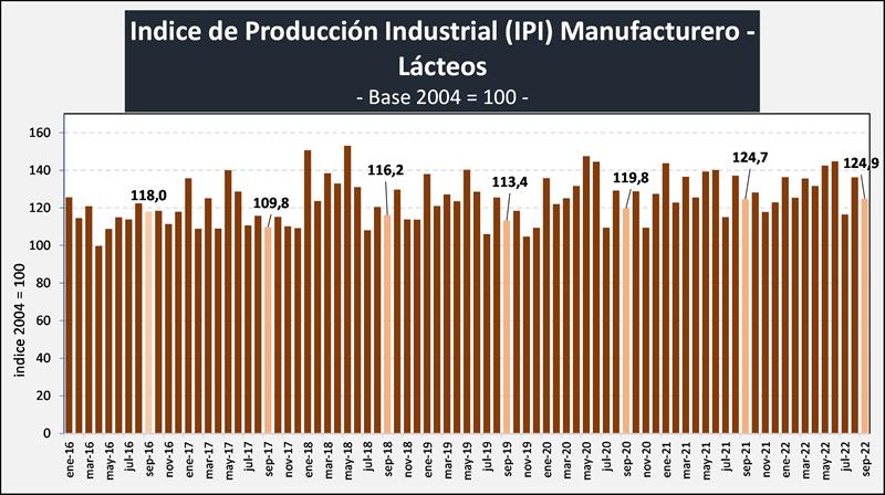 Índice de Producción Industrial Manufacturero – LÁCTEOS - septiembre de 2022