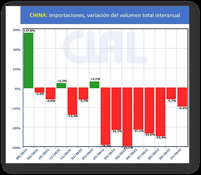 elaborado por el OCLA sobre la base de información que publica Aduana de China y complementado con datos y gráficos de CLAL.it