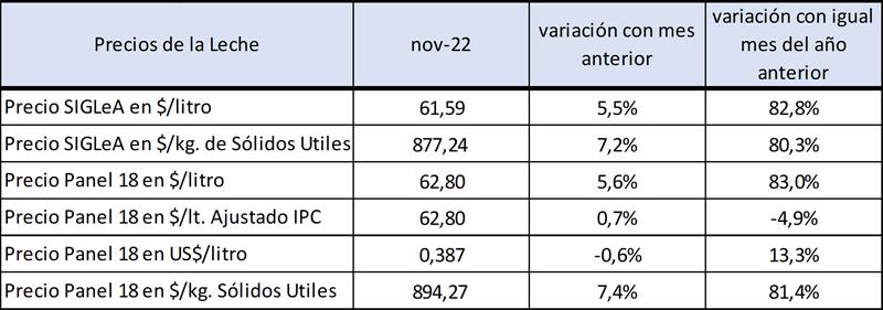 Precios de la leche al productor – noviembre de 2022 16/12/2022