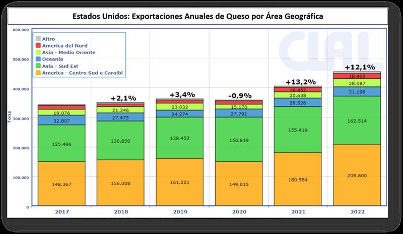 Estados Unidos y Nueva Zelanda atentos al mercado 10/2/2023En 2022, EE. UU. exportó un total de 3 millones de toneladas de productos lácteos (+6,1% en volumen, +26,8% en valor) (#). Los precios medios de los productos exportados han aumentado todos, a excepción de la manteca y otras grasas. Crece la exportación de queso (454 mil ton., +12,1%) con México, Corea del Sur, Japón y Australia como primeros destinos, y de manteca (82.463 ton., +43,2%). El desempeño de las exportaciones de Fat Filled Milk Powder (Leche en polvo descremada más grasas vegetales - SA 190190) fue bueno con un total de 183.781 toneladas (+13,6%). Este producto es de interés para los países "calientes" de África y Medio Oriente, y las cantidades exportadas podrían aumentar aún más gracias también al reposicionamiento del precio decreciente del aceite de palma. El precio de FFMP es generalmente más competitivo que la leche entera en polvo (WMP), y garantiza una mayor resistencia a las altas temperaturas. Por otro lado, 2022 fue un año difícil para las exportaciones de lácteos de Nueva Zelanda, ya que China, el principal comprador, desaceleró la demanda. La más afectada fue la exportación de LPE (1.335.116 toneladas, -17,5%), con volúmenes a China decreciendo en casi 400 mil toneladas, solo parcialmente compensado por mayores ventas a otros países. Esta desaceleración probablemente ha llevado a Nueva Zelanda a cambiar sus estrategias de producción, orientándose hacia una mayor producción de LPD y manteca. La exportación de LPD, de hecho, ha aumentado hacia los países del Sudeste Asiático y el Norte de África, lo que ha permitido a Nueva Zelanda cerrar 2022 con un aumento del 10 % en las ventas con respecto a 2021, a pesar de las menores cantidades hacia China. Las exportaciones de manteca fueron positivas (453.734 ton., +13,9%) principalmente por el efecto de dos factores: una demanda creciente en el mercado chino, principal destino de la manteca neozelandesa, y un precio competitivo en los mercados mundiales. ¿Qué esperar en las próximas semanas? El último evento GlobalDairyTrade (7 de febrero) mostró signos de un aumento promedio en los precios de venta de +3,2%. ¿Se debe considerar esto como una señal de una recuperación de la demanda a escala mundial?... ![]() (#) Observación OCLA: 3 millones de toneladas de productos exportados son unos 18 mil millones de litros de leche equivalentes a un promedio de 6 litros/kg. de producto (con coeficientes de conversión entre 0 para sueros y mantecas y 14 para quesos duros, pasando por 8 para polvos enteros y 11 para descremados). Esto representa un 18% de la producción total de leche de Estados Unidos que está en torno a los 100 millones de toneladas de leche en el año (unos 100 mil millones de litros de leche). traducido por el OCLA del newsletter de Clal.it por Mirco de Vicenzi