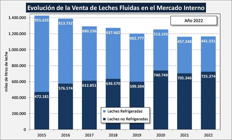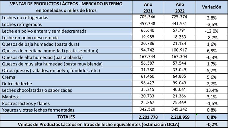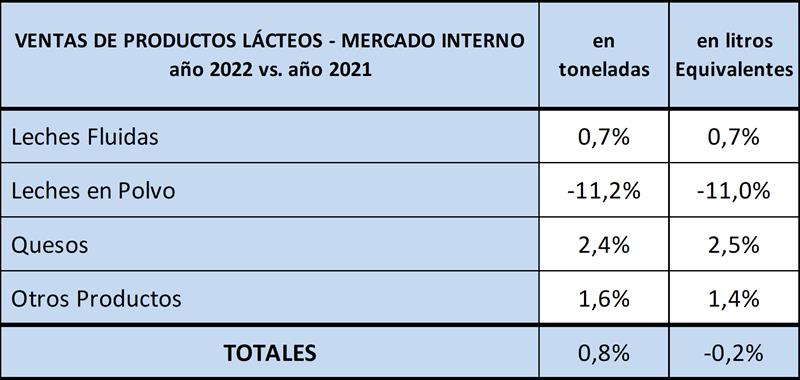 Si hacemos la comparación interanual (dic22/dic21), las ventas según datos basados en la resolución mencionada, subieron 2,6% en volumen de productos y 2,8% en litros de leche equivalentes.