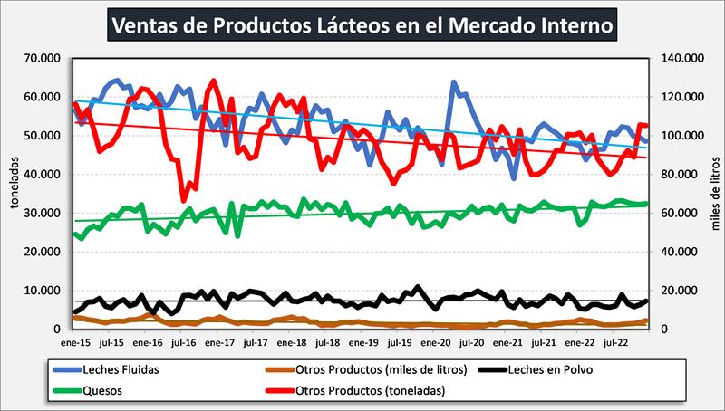 A pesar de los comentarios, respecto al cuidado que hay que tener al analizar las bajas y subas de ventas de los diferentes productos en el período actual, lo que es contundente es que las ventas y por ende el consumo, presentan en los últimos años una tendencia a la baja en general y una primarización del mismo (productos más básicos: leches fluidas no refrigeradas, quesos al peso de segundas y terceras marcas y yogures bebibles de litro) en detrimento de aquellos productos de mayor valor agregado y por ende económico.