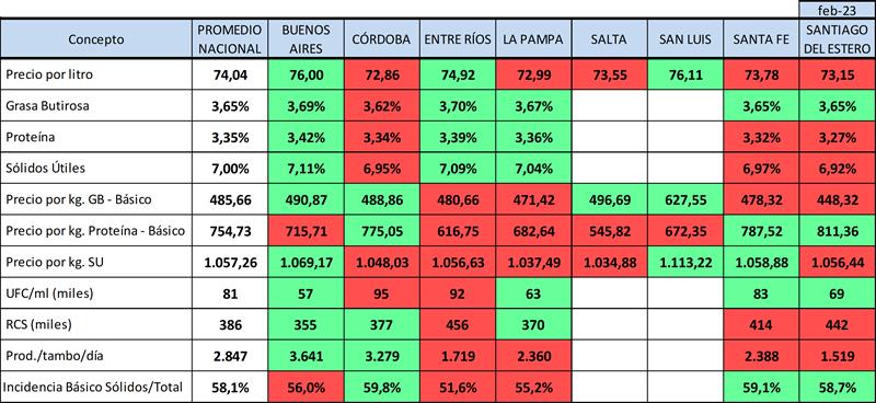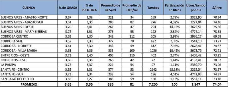 Provincias y Cuencas Lecheras: producción, calidad y precio 5/4/2023
