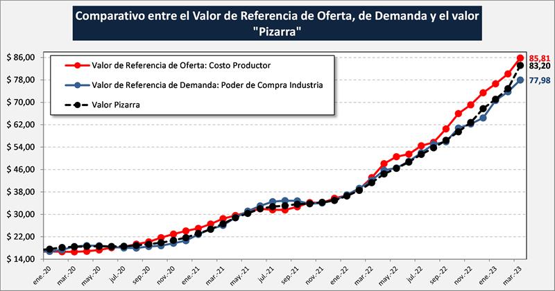 Valor Pizarra: precio publicado por la DNL-MAGyP en base a la muestra de 18 empresas.