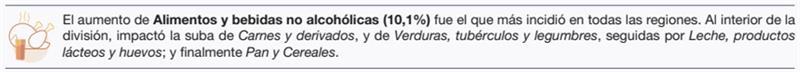 Los alimentos y bebidas no alcohólicas en general, crecieron un 10,1% en abril de 2023, 41,2% en el primer cuatrimestre y un 115,0% en el interanual.