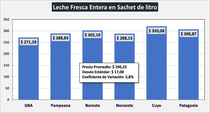 Se observa también en el análisis de los datos y con la información de Consultoras de Mercado, que existe una gran dispersión de precios en función al canal comercial y a la región. El gráfico siguiente ejemplifica la diferencia regional.