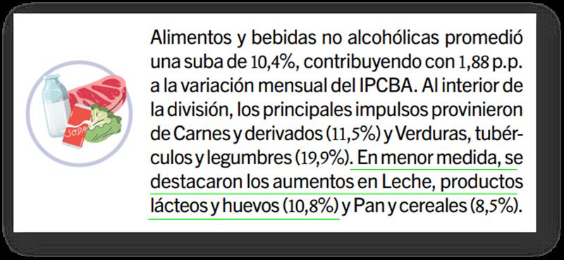 Como puede verse en los comentarios a los precios de los alimentos en CABA, se menciona a los productos lácteos dentro de los que impactaron en menor medida en la categoría junto con pan y cereales.