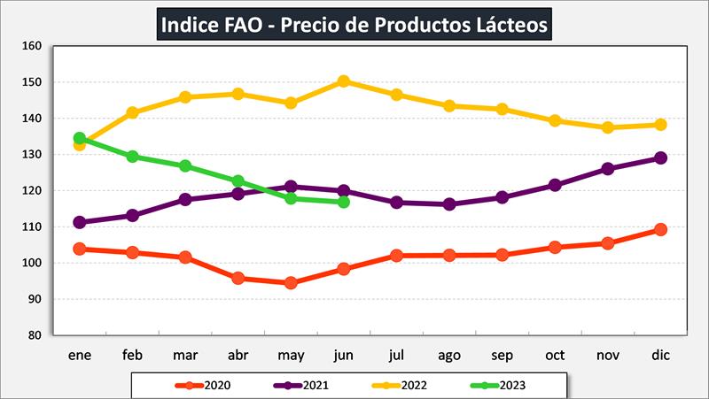 Indice de Precios de los Lácteos de FAO 7/7/2023