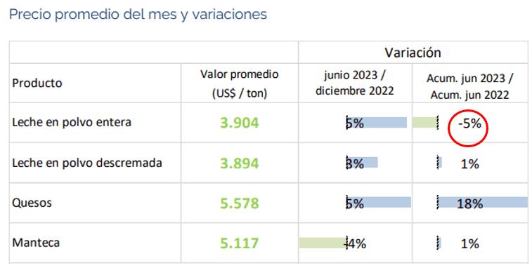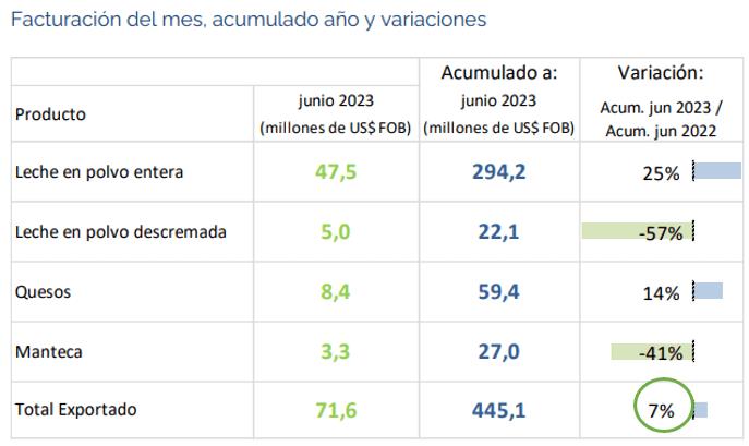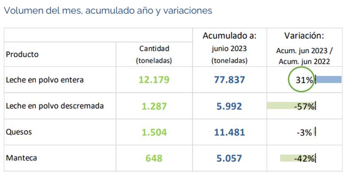 URUGUAY: exportaciones de lácteos - junio 2023