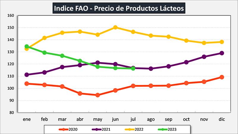 Indice de Precios de los Lácteos de FAO 7/8/2023