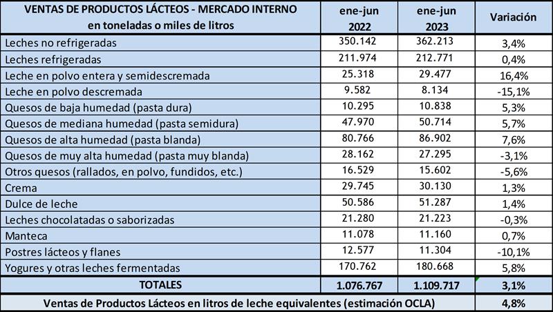 Ventas de Productos Lácteos en el Mercado Interno – junio 2023 24/8/2023