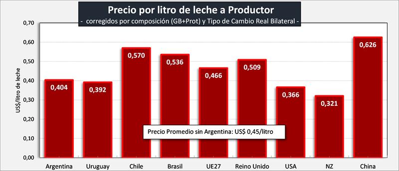 Precio de la Leche al Productor en dólares por litro, corregidos por Sólidos Útiles (Grasa Butirosa + Proteína):