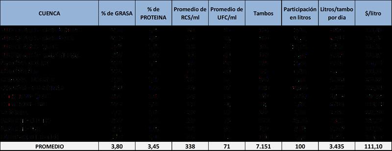 Provincias y Cuencas Lecheras: producción, calidad y precio 25/9/2023