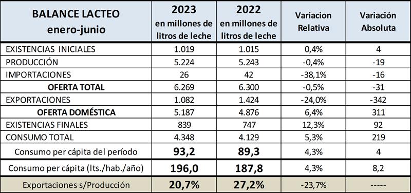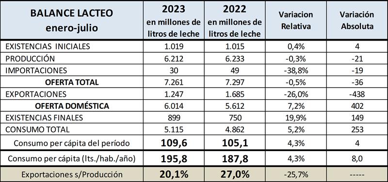 Balance Lácteo a junio de 2023 (provisorio a julio de 2023) 27/9/2023