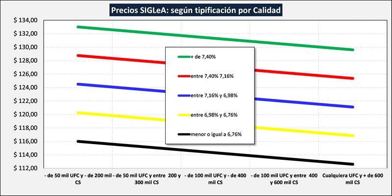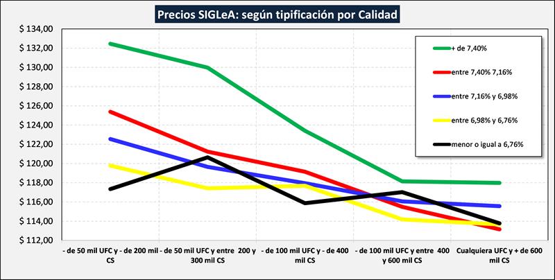 En el cuadro de tipificación, la leche comercializada se divide en 25 estratos según composición y calidad higiénico-sanitaria y, dentro de cada estrato, se muestra un promedio ponderado del precio del total de esos litros y además un promedio ponderado del 20% superior e inferior de los precios.