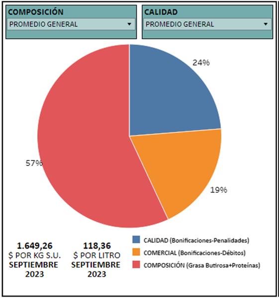 Los precios publicados surgen del promedio del precio básico + bonificaciones de calidad por estrato + el promedio de bonificaciones comerciales ponderados por litro. Los parámetros higiénicos y sanitarios son fijos mes a mes y los parámetros composicionales para definir cada rango variarán por mes en función a la estructura composicional (grasa butirosa + proteína).