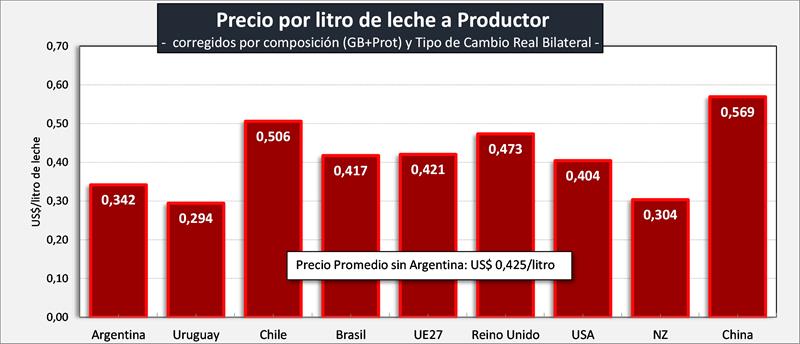 Precio de la Leche al Productor en dólares por litro, corregidos por Sólidos Útiles (Grasa Butirosa + Proteína):