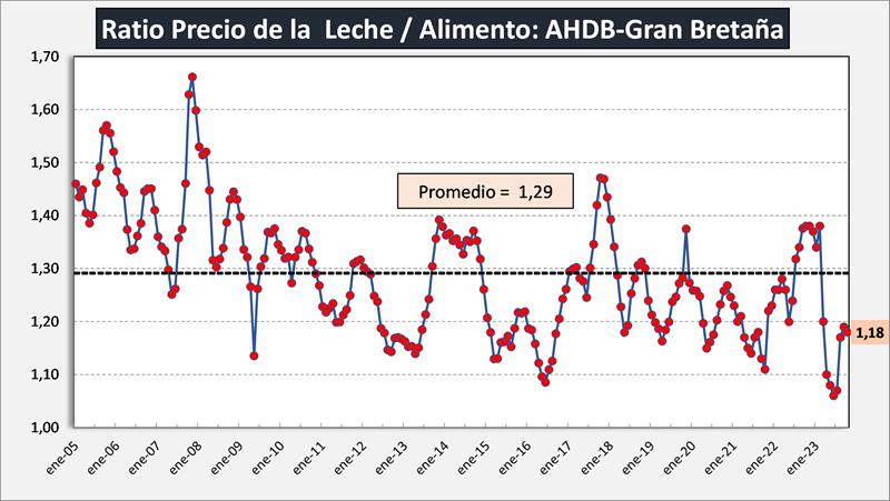 Indicador Milk Feed Price Ratio elaborado por AHDB Dairy del Reino Unido.