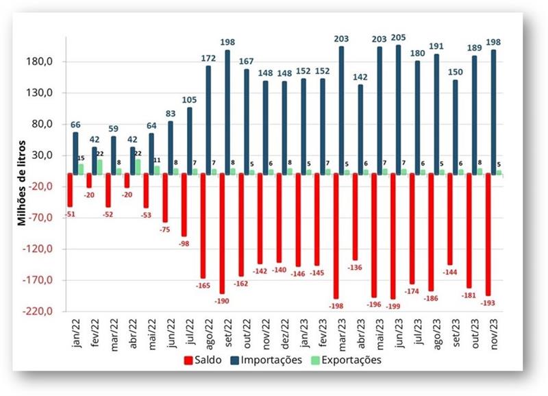 Por lo tanto, los meses de diciembre y enero aún deberían presentar un nivel alto en las importaciones brasileñas de lácteos, sin embargo, dado el aumento esperado de los precios internacionales y debido a las recientes medidas gubernamentales que apuntan a frenar las importaciones el próximo año, en el primer semestre de 2024, se espera que las importaciones disminuyan en comparación con la primera mitad de 2023.