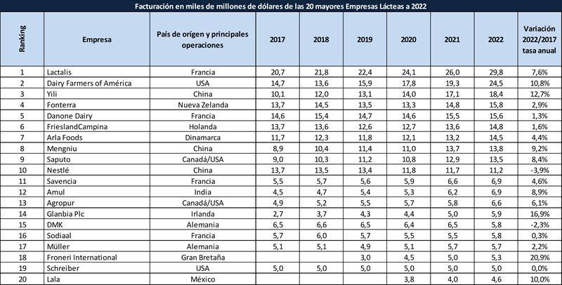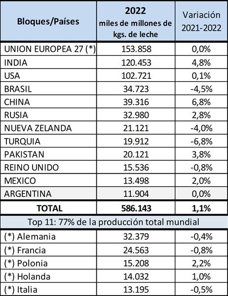 elaborado por el OCLA con datos del World Dairy Situation 2023 de la Federación Internacional de Lechería IDF/FIL