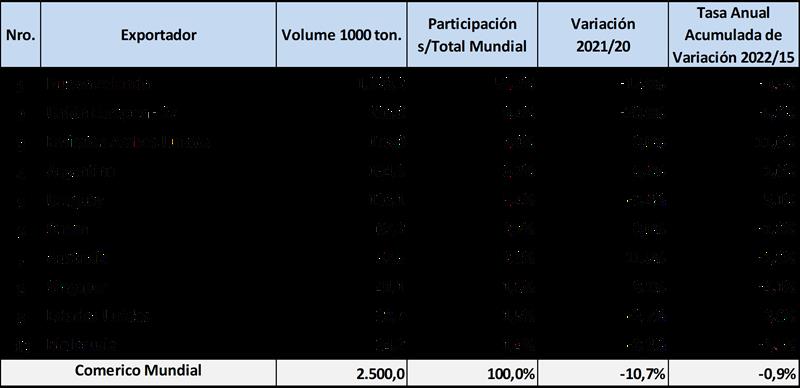 El comercio internacional de leche en polvo entera (LPE) se caracteriza por un alto grado de concentración. Los 10 principales países exportadores representaron alrededor del 90% del total del comercio mundial en 2022. De estos, Nueva Zelanda y la Unión Europea representaron más del 60 %.