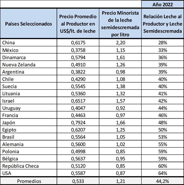 Tampoco se consideran las diferentes tasas de venta (IVA) que van del 0% al 27%, y que la leche fluida no es representativa del total del destino de la leche, donde los quesos y las leches en polvo tienen mayor participación relativa en el destino a productos. Además, cabe aclarar que la leche fluida es muchas veces utilizada por la distribución minorista como producto reclamo, oferta, gancho para atraer al consumidor y que los productores de esos países piden que esta situación se modifique (Ejemplo: España).