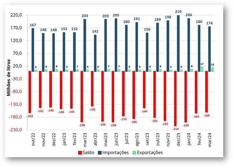 BRASIL: Balanza comercial de lácteos 8/4/2024