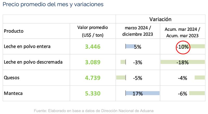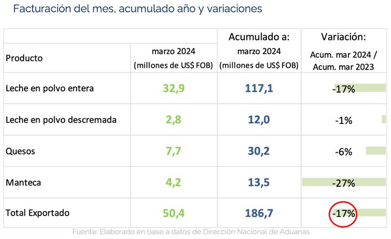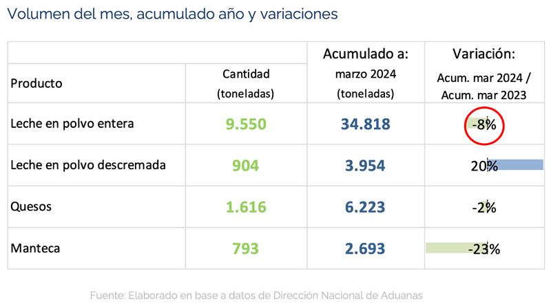 URUGUAY: exportaciones de lácteos - marzo 2024