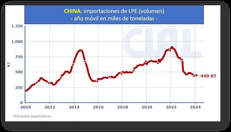 Las compras de China en el mercado internacional ascendieron a unos 20.000 millones de litros de leche equivalentes en el año 2021, muy cercanas al 25% de lo que se comercializó en ese mercado (excluyendo las ventas intra Unión Europea), de allí que su comportamiento es muy relevante para la determinación de los precios. En el año 2022 una caída del 17,1% en las ventas mundiales en China, que tuvo en ese año el 18% de las compras (litros de leche equivalentes), implicó una baja de más del 3,4% del total mundial, cuando este mercado sube normalmente un 3% anual. Si vemos lo que ocurrió en el año 2023, como indicamos más arriba, las compras de China medidas en litros de leche equivalentes cayeron un 20,5% (las compras chinas representaron el 14% del mercado mundial), restándole por lo tanto a la demanda mundial unos 3,5 puntos porcentuales, que se enfrentaron con una producción mundial creciendo en torno al +1% y una demanda retraída en el consumo doméstico de los países exportadores, lo cual contribuyó como principal causa a la caída de precios observada durante casi todo el año 2023.