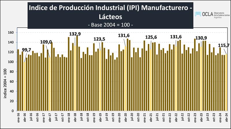 Índice de Producción Industrial Manufacturero – LÁCTEOS - abril de 2024