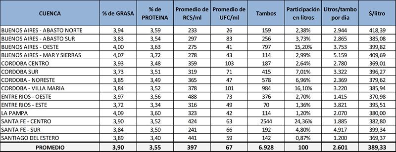 Provincias y Cuencas Lecheras: producción, calidad y precio 21/6/2024