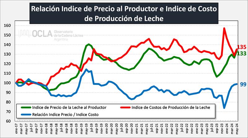Se calcula el Indice de Costos de Producción de Leche, actualizado por IPC y se referencian todos los costos mensuales a enero 2017 = 100.