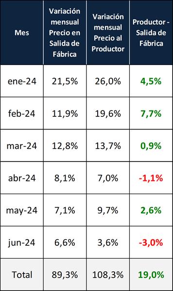 Variación del Valor de Salida Fábrica y del Precio al Productor – junio 2024 31/7/2024