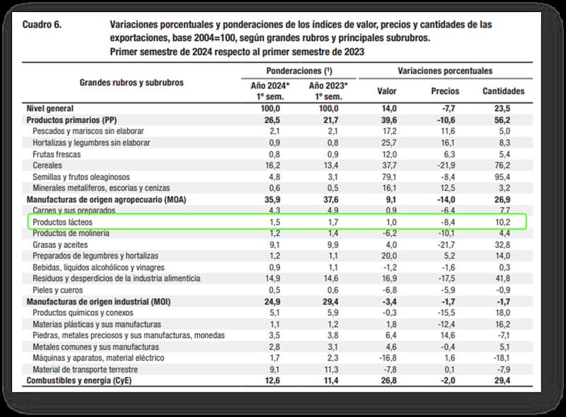 Cabe acotar que en el rubro lácteos (en este análisis en particular) hay una subvaloración del total exportado producto de que no se incluyen las exportaciones denominadas confidenciales o dentro del Secreto Estadísticos.