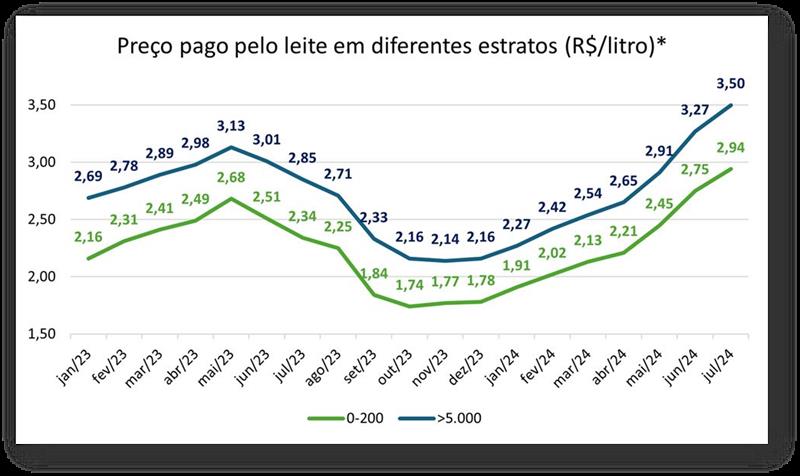 En el mercado brasileño existe una diferencia significativa en el precio recibido por la leche entre pequeños y grandes productores.