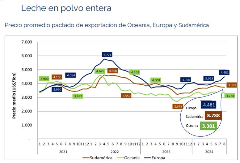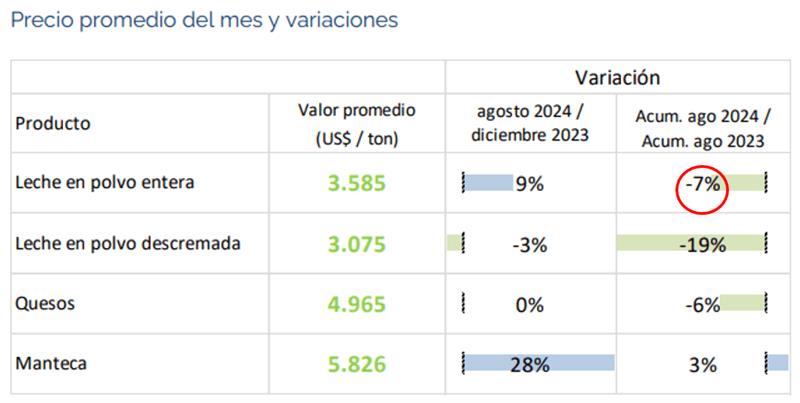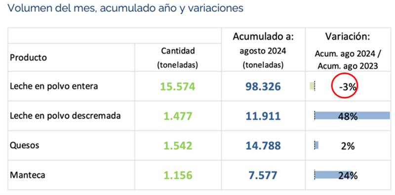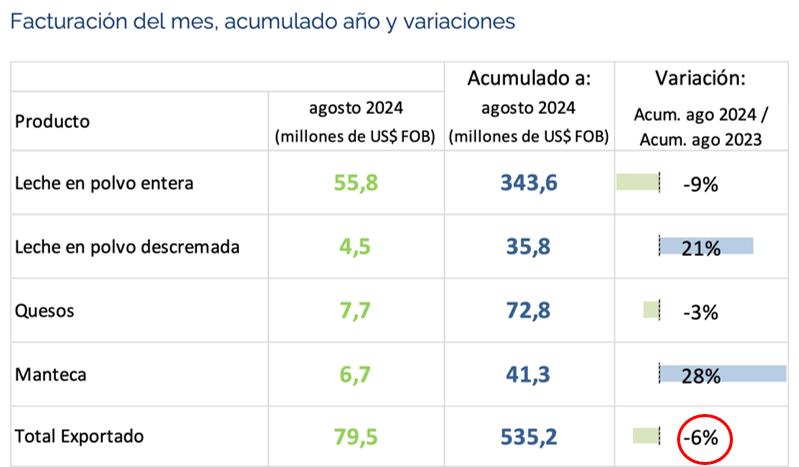 URUGUAY: exportaciones de lácteos - agosto 2024