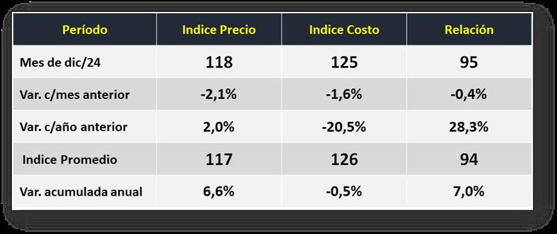 Relación Indice Precio e Indice Costo de Producción: diciembre 2024 17/1/2025