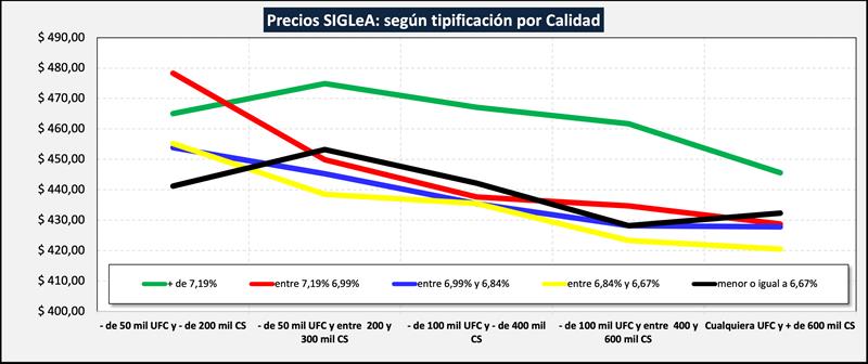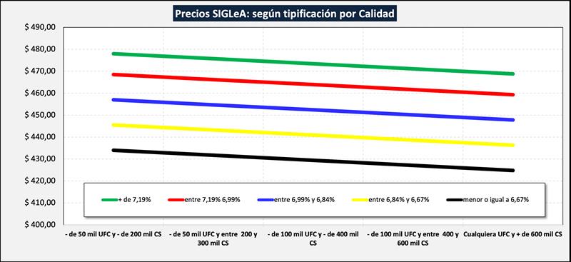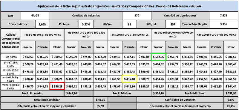 En el cuadro de tipificación, la leche comercializada se divide en 25 estratos según composición y calidad higiénico-sanitaria y, dentro de cada estrato, se muestra un promedio ponderado del precio del total de esos litros y además un promedio ponderado del 20% superior e inferior de los precios.