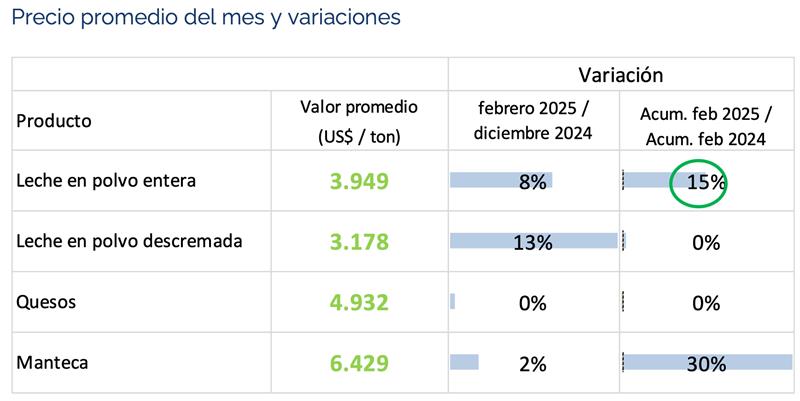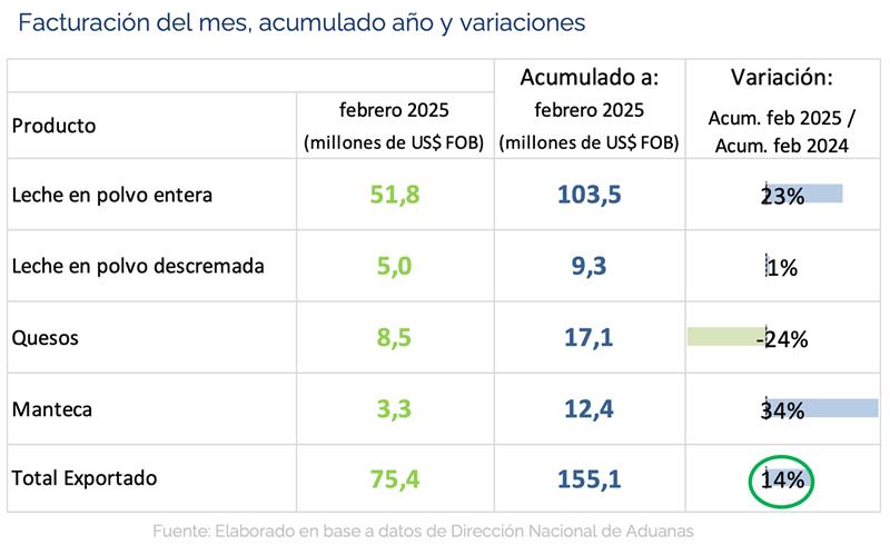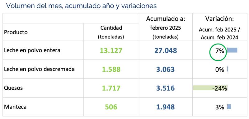 URUGUAY: exportaciones de lácteos - febrero 2025