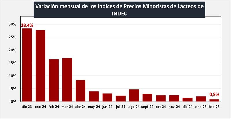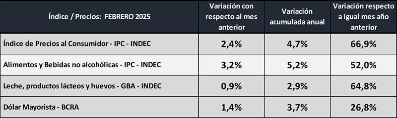 Precios de los lácteos al mes de febrero de 2025 14/3/2025